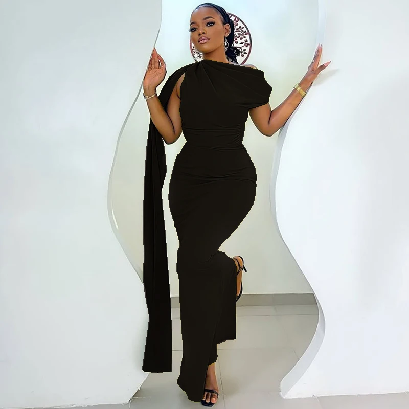 2025 Summer Casual Slim Halter Long Dress Sexy Satin Textured Ribbon Maxi Length Woven Logo on Front New Style